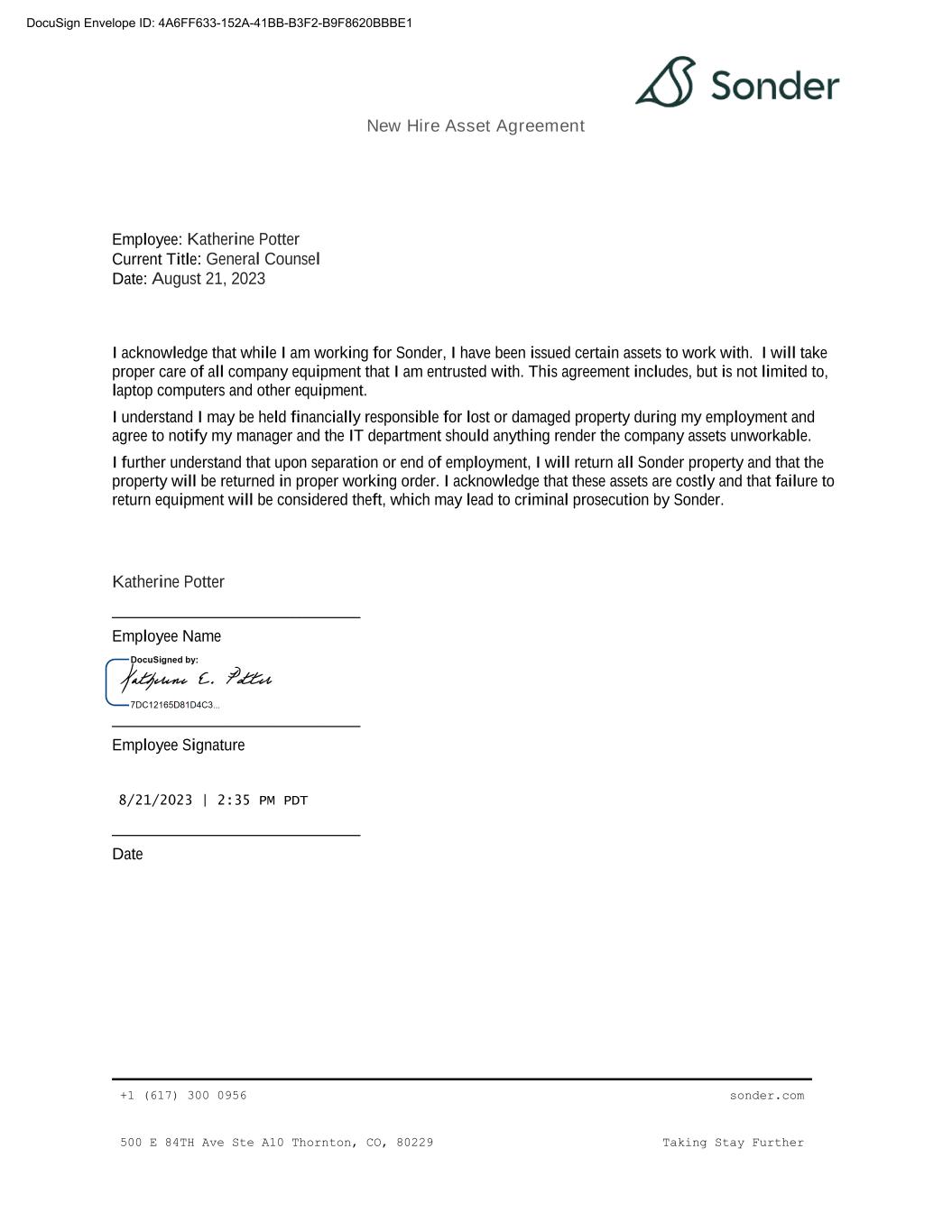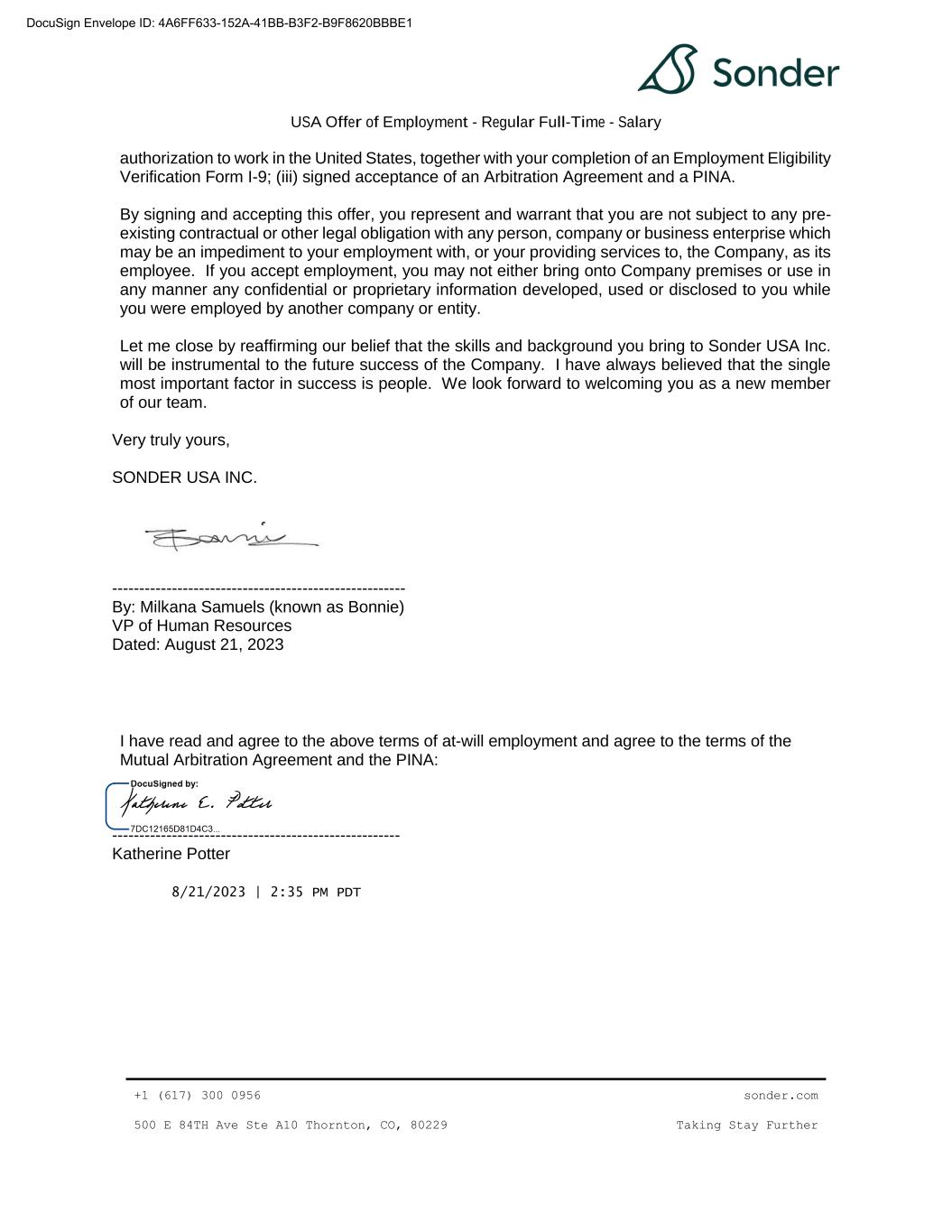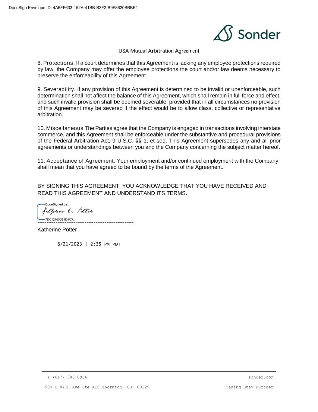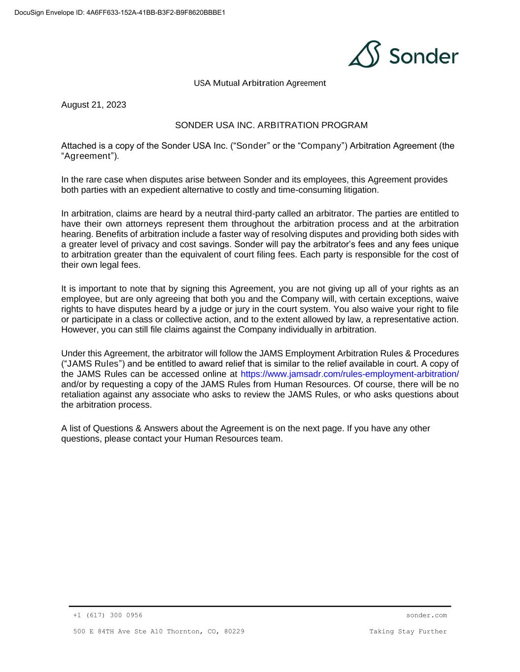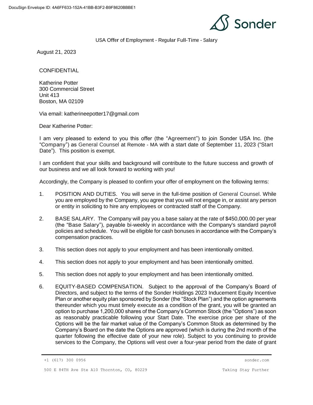 | 10.33 | | Fifth Amendment to Note and Purchase Warrant Agreement, dated as of August 13, 2024, by and among Sonder Holdings Inc., Sonder Holdings LLC, Sonder USA Inc., and Sonder Hospitality USA Inc., the guarantors party thereto, the investors listed on the signature pages thereto, and Alter Domus (US) LLC, as collateral agent | | 8-K | | 001-39907 | | 10.1 | | August 19, 2024 | | |