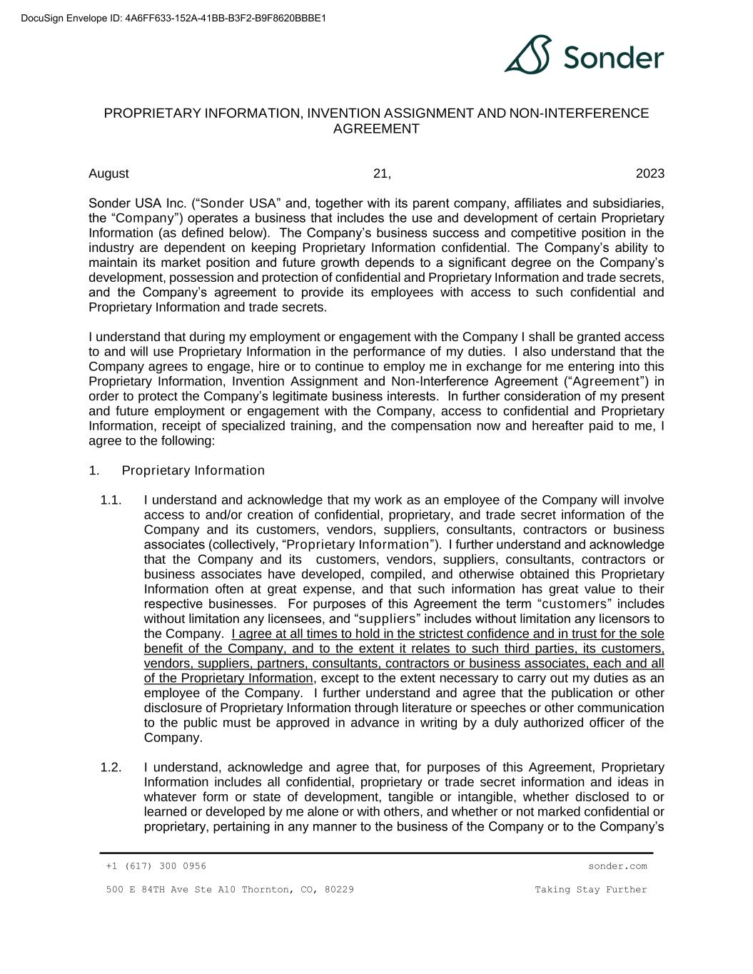 | 10.29 | | Omnibus Amendment, dated as of December 21, 2022, by and among Sonder Holdings Inc., Sonder Holdings LLC, Sonder USA Inc., Sonder Hospitality USA Inc., and Sonder USA, the guarantors party thereto, the investors listed on the signature pages thereto, and Alter Domus (US) LLC, as collateral agent | | 10-K | | 001-39907 | | 10.29 | | March 16, 2023 | | |