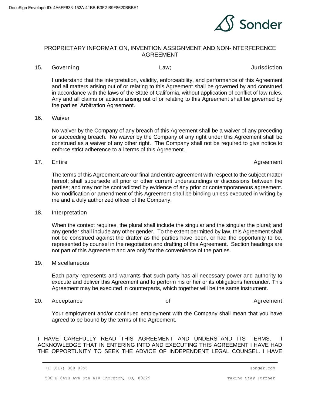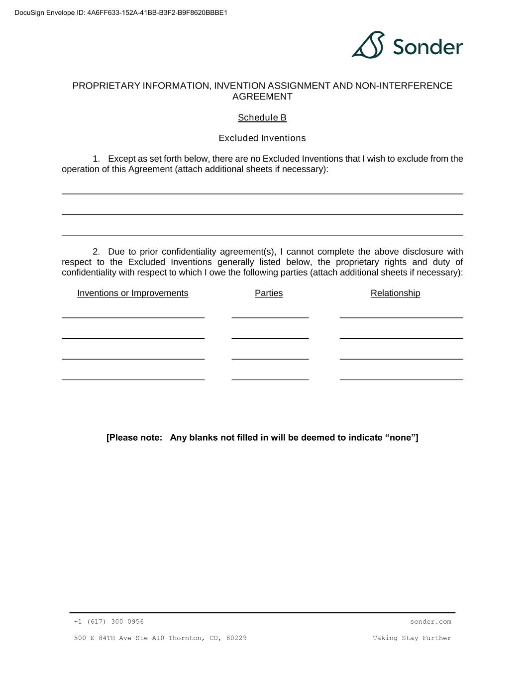 | 10.31 | | Waiver, Forbearance and Third Amendment, dated as of June 10, 2024, by and among Sonder Holdings Inc., Sonder Holdings LLC, Sonder USA Inc., and Sonder Hospitality USA Inc., the guarantors party thereto, the investors listed on the signature pages thereto, and Alter Domus (US) LLC, as collateral agent | | 8-K | | 001-39907 | | 10.1 | | June 11, 2024 | | |