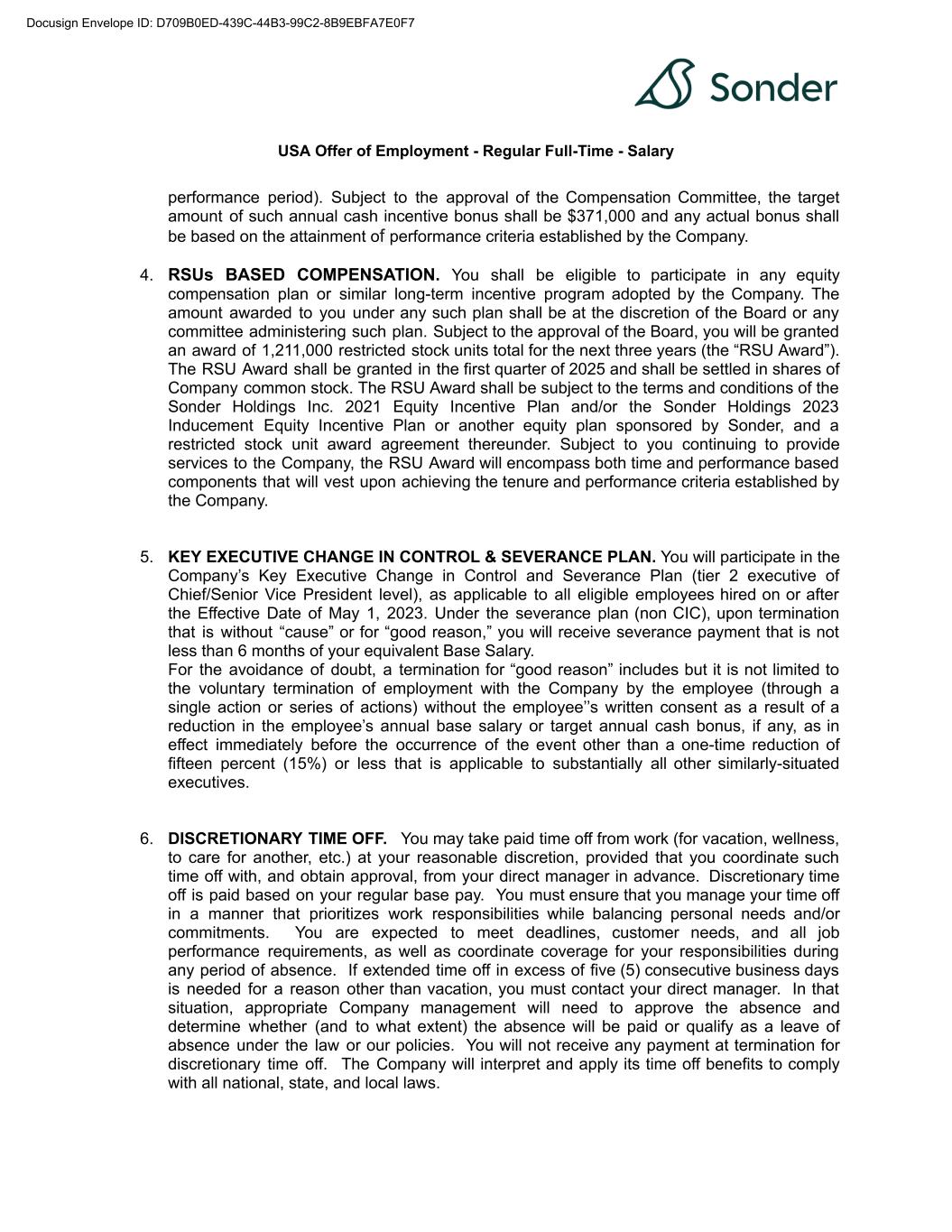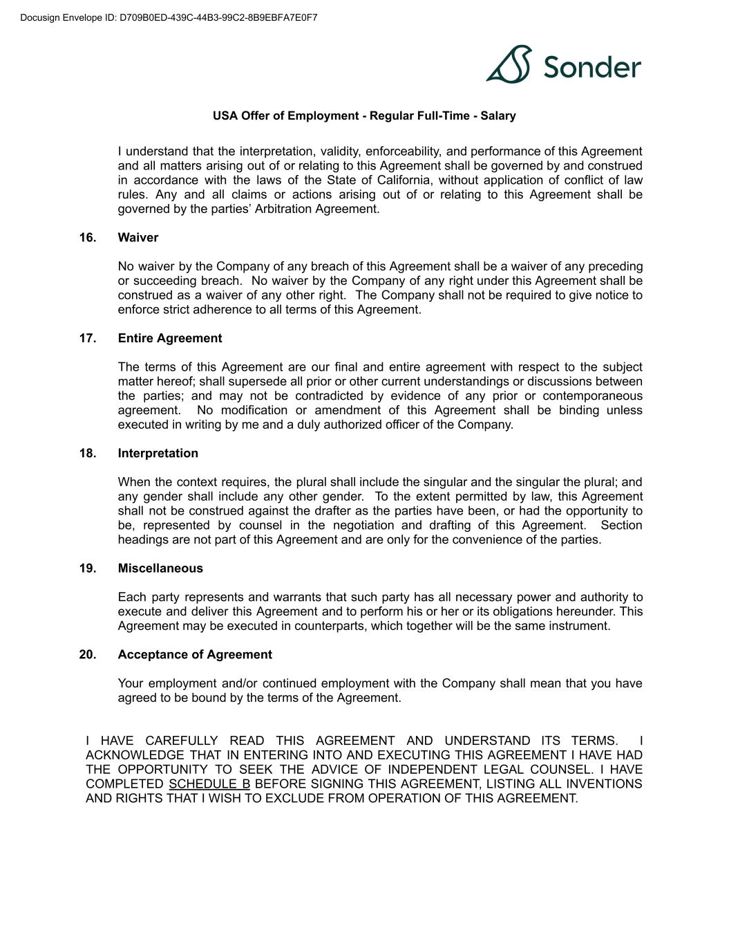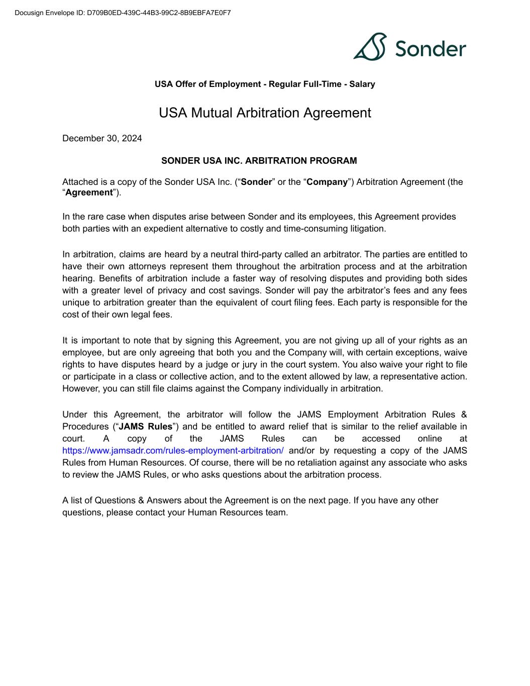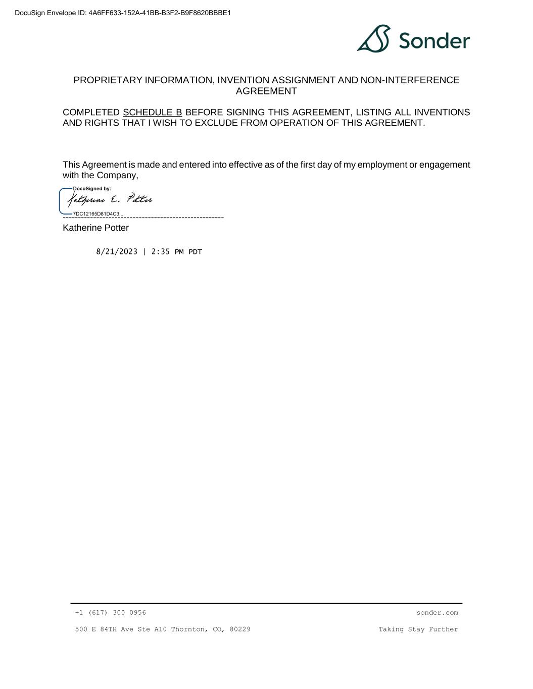 | 10.41 | | Waiver Agreement, dated as of September 26, 2024, by and among the Company, Sonder Holdings LLC, Sonder Group Holdings LLC, Sonder Technology Inc., Sonder Hospitality USA Inc., Sonder USA Inc., Sonder Hospitality Holdings LLC, Sonder Partner Co., Sonder Guest Services LLC and Silicon Valley Bank, a division of First-Citizens Bank & Trust Company. | | 10-K | | 001-39907 | | 10.32 | | September 26, 2024 | | |